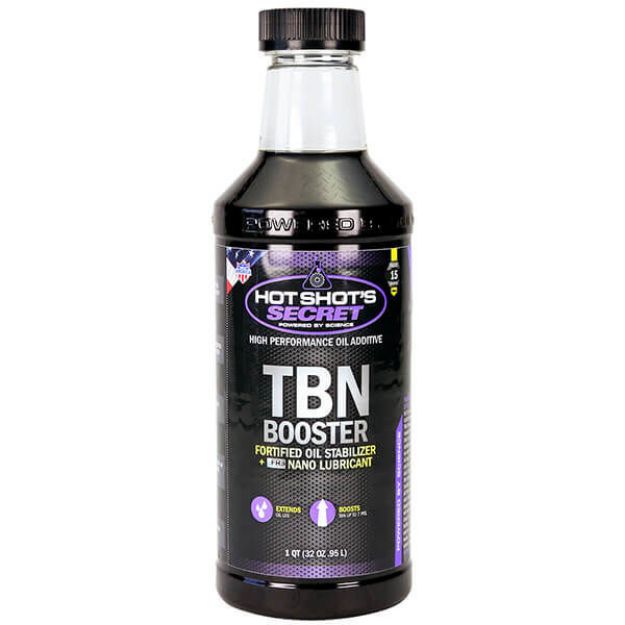 Hot Shot’s Secret TBN Booster is an engine oil additive created to fortify and stabilize the host oil while also increasing the Total Base Number (TBN). TBN Booster increases the host oil’s Total Base Number and viscosity by replenishing the oil’s detergents that are naturally lost over time. This allows the oil to effectively neutralize the acidic conditions that corrode your engine.